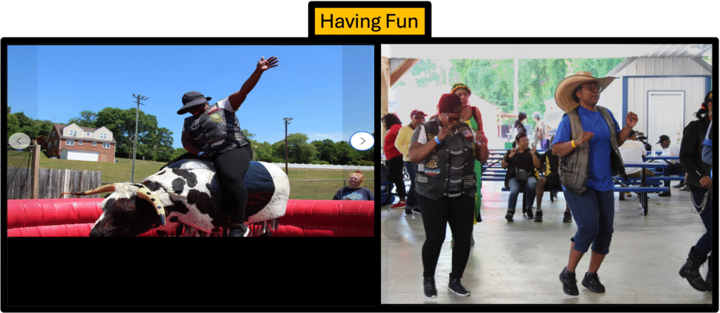 We enjoy riding and we have fun during our travels, sharing the laughter, the jokes and the great friendship within our chapter. The culmination of entertainment is unbelievable! “Click here to check out our facebook page”
